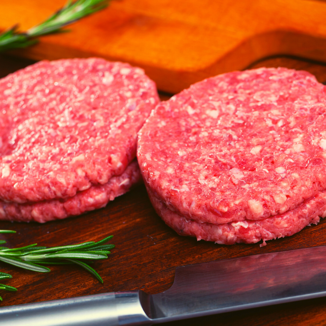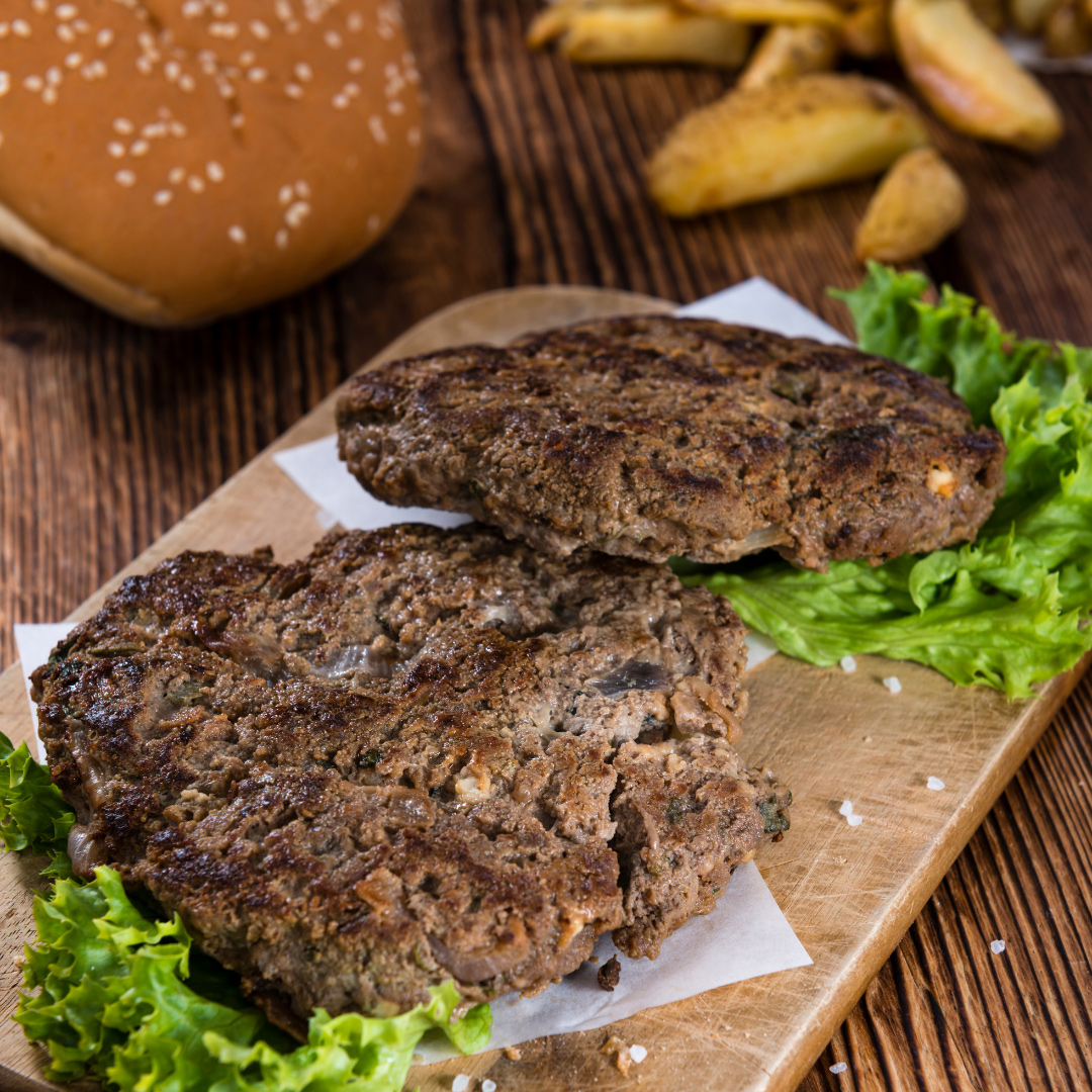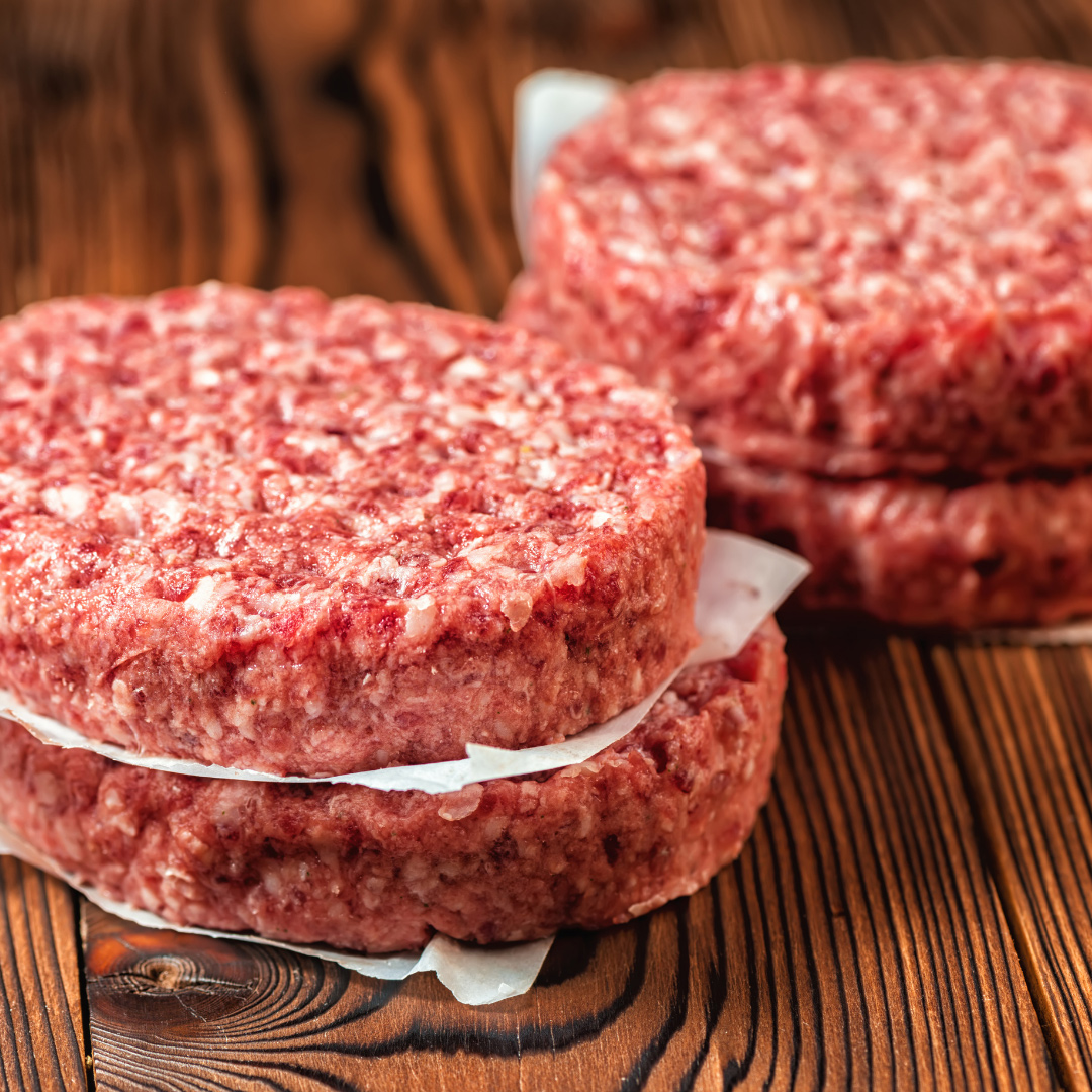 Hamburguesas caseras de carne, congeladas y listas para cocinar. Sabor auténtico, textura perfecta.
