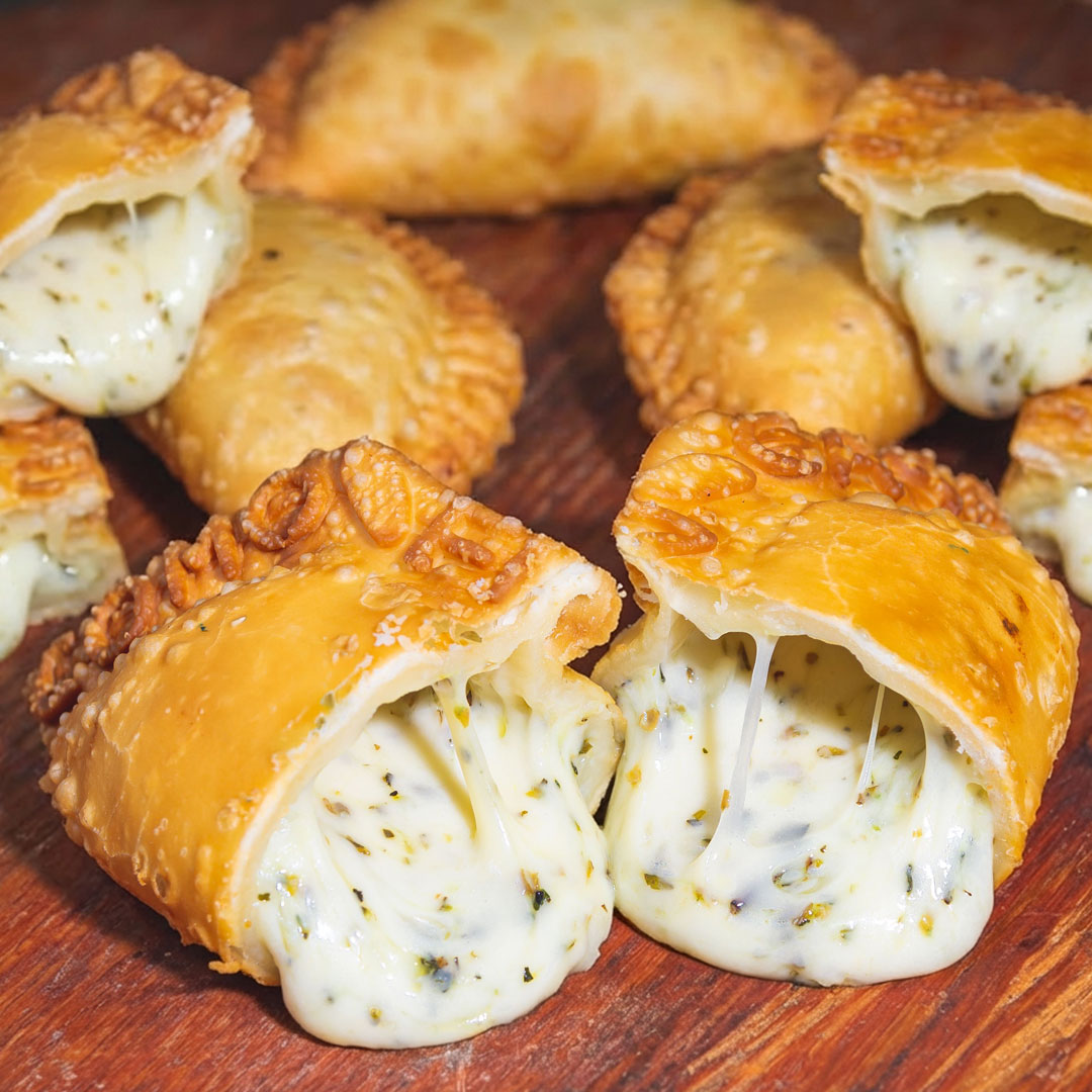 Empanadas congeladas de queso y cebolla, cremosas.